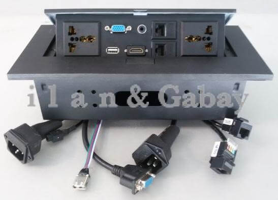 & 2 שקעי חשמל אוניברסלי, 2 שקעי מחשב, VGA,USB,HDMI,AUDIO.