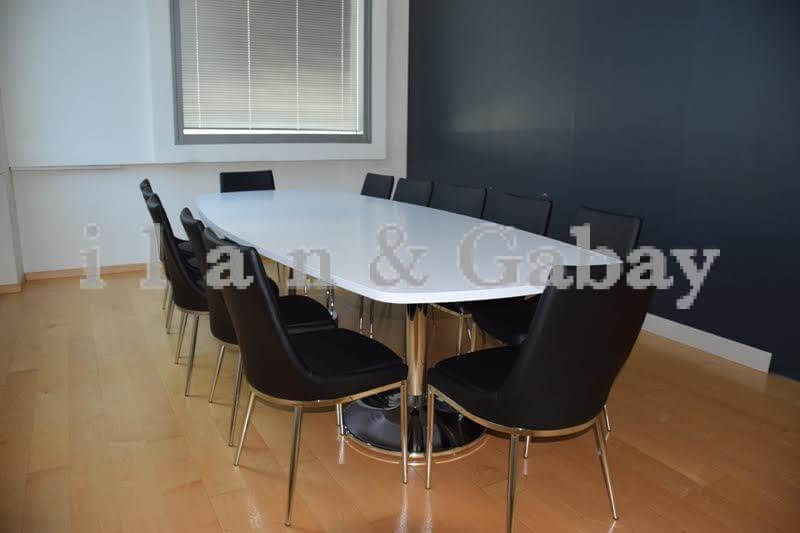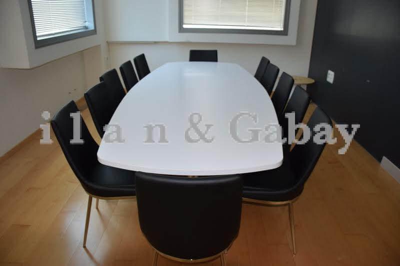 & שולחן ישיבות עשוי מפורמייקה.