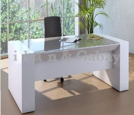 & שולחן מנהלים מהודר בצבע לבן אפוקסי+זכוכית מעל.